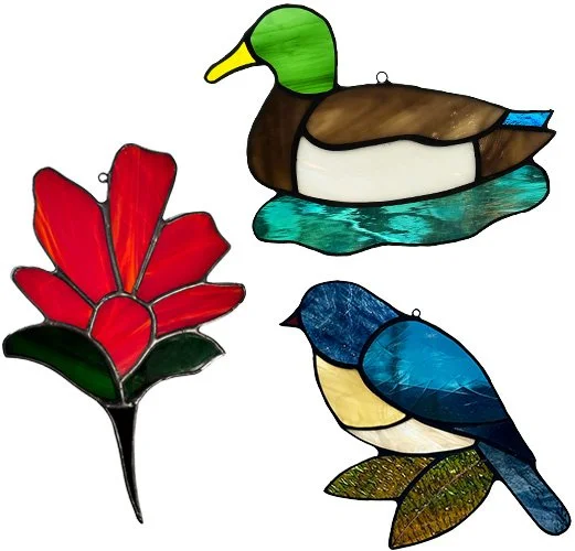 Learn how to cut, grind, copper foil and solder a stained glass sun catcher. $110.00 per class includes all instruction, material and supplies.